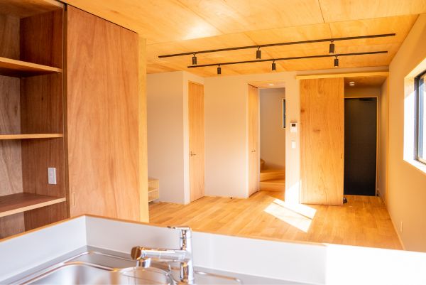 造作家具が映えるウッド調の内装と安心感のあるリビング。
